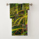 Este juego de toallas de baño incluye una fotografía original de las palmeras de Areca, nativas de los bosques tropicales del sudeste asiático. Las delgadas hojas verdes amarillas hacen patrones interesantes, con sus troncos pálidos en medio, creando un ambiente tropical.