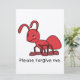 Perdóname tarjeta de hormiga roja llorando, por fa