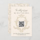 Responda con estilo con esta tarjeta de RSVP coordinada de nuestra colección de damasco francés "Perfect Pear". Con un refinado marco de damasco que rodea un código QR moderno para respuestas digitales, este diseño combina elegancia atemporal con comodidad. La paleta de oro neutro suave y la tipografía clásica crean un acompañamiento lujoso para su suite de invitaciones de la ducha de novia. Personalice con los detalles de RSVP y combine con invitaciones, tarjetas de registro y accesorios de toda la colección para un aspecto coherente.