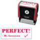 Este divertido diseño de sellos de goma incluye el motivador mensaje "¡PERFECTO!" y el nombre personalizado del profesor, educador o tutor. También cuenta con una marca de verificación decorativa. Podría ser utilizado por un profesor, educador o tutor al marcar las asignaciones, para indicar que el estudiante ha tenido un buen desempeño.