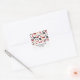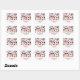 Un pegatina de direcciones con un diseño que consiste en bolsos de cambio negro con puntos de polka blancos, bolsos de embrague rojo con arco negro, rubíes rojos, gafas de sol de ojos de gato rojo y negro, y botellas de perfume con atomizador rojo.