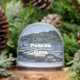 Both sides have row boats tied to the dock at Perkins Cove in Ogunquit, Maine. The front text says Perkins Cove and the reverse side text says Ogunquit, Maine.