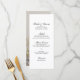 Personalizar las Perlas Blancas bonitos, el Anillo de Diamantes y el Boda Blue Lace con los detalles de la comida que se sirven en la fiesta de compromiso, el almuerzo de la ducha de novia o la cena de la recepción matrimonial añadiendo la ensalada o el primer curso, el entrante o segundo y el postre o tercer curso. Personalízalo con los nombres de la novia y el novio, la ubicación del lugar y la fecha del evento. Este elegante menú nupcial personalizado incluye una fotografía de un collar de perlas blancas y un anillo de compromiso con los diamantes con un pañuelo de lino recortado de encaje azul y blanco.