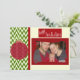 Tarjeta fotográfica de vacaciones para Navidades bonitos con nuestro diseño Let it be Navidades, fácil de personalizar con su texto y foto, el saludo de vacaciones perfecto para enviar a amigos y familiares. Esta tarjeta roja, crema y verde de rayas de chevron incluye un banner de Happy Holidays y un adorno de bola de árbol rojo.