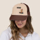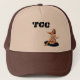 gorra marrón del camionero con el logotipo del TCC y chica del perno-para arriba que se sienta en un disco de vinilo
