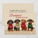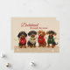 Lleva una sonrisa al rostro de cualquier amante de los perros con esta adorable tarjeta de Navidad de "Dachshund en la nieve". Con cuatro irresistiblemente lindos dachshunds envueltos en suéteres festivos y enredados en luces navideñas coloridas, este diseño juguetón captura el caos acogedor de la temporada. Con un fondo cálido y neutro y copos de nieve caprichosos, es la forma perfecta de enviar alegría navideña con un toque de encanto perruno. Ideal para dueños de dachshunds, padres de mascotas o cualquier persona que no pueda resistir un poco de humor navideño.