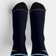 Un toque final para la musher bien vestida. Un perro con una bolsa de trineo verde azulada superpuesta sobre un fondo estrellado.