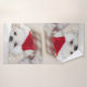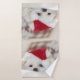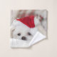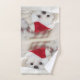 Toalla puesta con una adorable foto de un adorable perro blanco usando un gorra de navidades rojos.