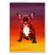 Un lindo perro Bulldog francés sentado con un fondo colorido, una idea de regalo perfecta para alguien que ama esta raza de perro.