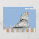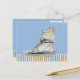 Perro conduciendo una postal con franjas de zapato