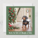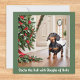 Una divertida tarjeta de Navidad con imagen de dachshund. El cachorro adorable está mirando el acebo festivo, con la leyenda 'Dachs el Salón con Ramas de Acebo', un juego de palabras con el título de la canción tradicional 'Adornar el Salón...' Seguro que atraerá a los amantes de los perros (¿y quién no ama a un doxie adorable?) esta divertida tarjeta traerá una sonrisa a familiares y amigos esta temporada navideña.