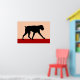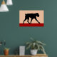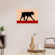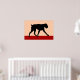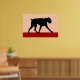 Un minimalista diseño de arte moderno de una silueta de un perro boxeador de colores negros y rojos.