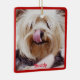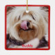 Ornamentos de Navidad de perro (adorno de cerámica cuadrada) con texto de personalizable y foto - puedes agregar la foto y el nombre de tu perro. Mide 2 pulgadas por 2 pulgadas y pesa 1.5 onzas. También se puede encontrar un diseño similar con foto personalizada y texto en otros ornamentos - cerámica, copo de nieve de pewter o en ornamento de bola de cerámica.