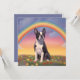 Una tarjeta de simpatía conmemorativa personalizada del Boston Terrier con una hermosa pintura de un Boston Terrier en una colina celestial con un hermoso arcoíris sobre la cabeza. Simbolizar al perro del Boston Terrier ha pasado el puente arcoiris al cielo doggy. Puedes personalizarlo con el nombre de tu propio perro del Boston Terrier o cualquier otro texto en el reverso de la tarjeta. Hace un homenaje especial o un regalo de solidaridad para cualquier amante del perro del Boston Terrier si su querido perro ha pasado.