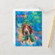 Perro de raza Basset Hound Navidad presenta una acuarela de un Basset Hound con una capa verde navideña con capucha y una acuarela de galaxia.