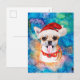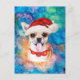 Perro de raza Chihuahua Navidad presenta una acuarela de un Chihuahua con un sombrero rojo de Santa, un collar rojo de Navidad y una acuarela de galaxia.