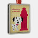 Este ornamento cuadrado superior tiene un fondo amarillo del tablero de damas con un perrito adorablemente lindo del dalmation que se coloca al lado de una boca de incendios roja. Usted puede personalizar esto con un nombre o lo que el otro texto usted puede querer. Algunos elementos son derechos reservados por http://www.mygrafico.com/stockberry-studio/aff_124.html