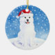 Este samoyedo blanco lindo y mullido se placerá adornar su árbol de navidad, pero usted apenas puede ser que quiera guardarlo encendido para exhibir todo el invierno. Tarjetas de felicitación a juego, pegatinas y otros artículos con esta imagen también disponible en mi tienda de Zazzle.