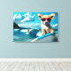 Esta buena gráfica de arte digital generada por computadora muestra perros en tablas de surf en un océano surfístico. Hay olas y montañas de estilo hawaiano en el fondo. Creada con múltiples generaciones de imágenes de la fuente de IA DALL-E, esta nueva forma de arte es divertida para los fanáticos de la tecnología, el surf, el océano y los perros! Hace un gran cumpleaños, Navidades u otro regalo de vacaciones.