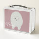 Buzón de almuerzo de nombre propio Fluffy Pomeranian Dog. Es fácil añadir color de fondo personalizado.