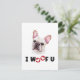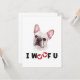 Perro francés de Bulldog I Woof You es un lindo y divertido retrato acuarela de una raza de perro de Francia y te trajo un texto divertido. Este es un regalo perfecto para todos los propietarios franceses de perros Bulldoges, madres y papás, o para cualquiera que adore esta raza francesa de perros.