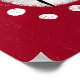 Un lindo perro dibujado en blanco y negro sobre un fondo rojo texturado rodeado de puntos blancos.