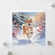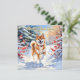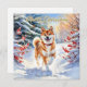 Envía encanto canino a amigos y familiares con esta tarjeta de Navidades Shiba Inu. El perro recubierto de rojo es retratado y corre alegremente a través de un paisaje nevado, con árboles verdes y bayas rojas, en un brillante día de invierno. La imagen es de acuarela. El saludo 'Feliz Navidad' está en la parte superior en elegante tipografía de escritura, mientras que el texto debajo del perro puede ser personalizado con tu(s) apellido(s) u otras palabras. La parte trasera de la tarjeta es azul claro. Una elección elegante para los dueños de perros y amantes de los animales.