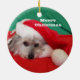 Este adorno navideño de perro en rojo y verde presenta a un lindo perro descansando mientras usa un sombrero de Santa. Una adorable adición al árbol de Navidad de cualquier amante del perro. El diseño de un perro lindo aparece en ambos lados. Derechos de autor ornamentsbyhenis