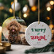 Un adorable ornamento de fotos de mascotas que muestra la audaz tipografía que dice "peluda y brillante" en una paleta de colores rojo, verde y dorado con un tipo de letra retro. Puedes personalizarlo con tu(s) nombre(s) de mascota, fecha y con tu propia foto en el reverso. Parar con cualquier cosa de la colección ROXY para un aspecto cohesivo.