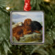 Impresión del vintage de un golden retriever, de un irlandés y de un organismo de Gordon en un paisaje montañoso de George W. Horlor. Ornamento del navidad.