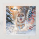 Este Navidad elegante les enseña fotos a un lindo perro Pomsky disfrutando de un paseo por un paisaje nevado, con bayas rojas y árboles verdes en un día brillante. En la parte superior está el clásico saludo 'Feliz Navidad', mientras que el texto de abajo puede ser personalizado con tu nombre o nombres u otras palabras. Llena de encanto canino, la tarjeta es ideal para los propietarios de la raza Pomsky y para los amantes de los perros.