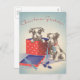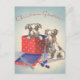 Imagen de vacaciones de Navidades de ilustracion de época con dos mascotas perritos perritos aterradores envueltos como regalos. Saludos de Navidad.