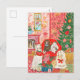 Hermosa, caprichosa y mágica tarjeta de Navidad dibujada a mano para tus amigos y familiares en esta temporada navideña. Celebra la temporada con mi hermosa ilustración pintada a mano con afganos, caniches, caniches doodle acostados en una acogedora sala de estar con chimenea y un árbol de Navidad decorado, papel pintado rosa atrevido para darle ese bonito toque femenino de moda. Obra original de Caroline Bonne Müller