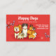 Una atractiva tarjeta de visita roja con cinco perros felices. <a href='https://www.freepik.com/free-vector/hand-drawn-chinese-new-year-calendar_1565257.htm'>Diseñada por Freepik</a>). <br/>() La tarjeta es fácil de personalizar con su texto, fuente y color de fuente.<br/>() ¿No es exactamente lo que estás buscando? Todos nuestros productos pueden ser personalizados diseñados para satisfacer sus necesidades sin coste adicional.<br/>() Simplemente contáctenos a heartfelthelper@gmail.com<br/>() Productos de coordinación disponibles:
