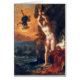 Esta es una reproducción de "Perseus y Andromeda" de 1853 por Eugene Delacroix. Este es un tratamiento clásico del popular mito griego de Perseo que viene al rescate de la princesa de Joppa, Andrómeda. Tenía cincuenta y cinco años en el año de esta creación. Se había topado con la palabra artística francesa dos años antes, a los veinticuatro años de edad, con su "Barque de Dante" y se había convertido en un líder inmediato del nuevo movimiento romántico. A diferencia de los académicos perfeccionistas, Delacroix lideró a los románticos en el uso de pinceladas expresivas inspiradas en Rubens y Titan. Favorecía escenas exóticas y enfatizaba el color y el movimiento en lugar de la claridad de la línea. Aunque sus temas estaban llenos de pasión y violencia, los retrató con una gran claridad. Esta pintura es un aceite sobre lienzo y mide 17,24 por 12,68 pulgadas. Está en la Staatgalerie Stuttgart, Alemania.