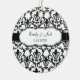Ornamento con un modelo negro del damasco en el frente con el sitio de añadir un nombre y una fecha. La parte posterior es th negro de los wi las palabras "nuestro primer navidad", que se pueden también cambiar para añadir su propia personalización.