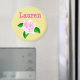Personalice este imán de nombres trazados de polka amarilla y rosa. Puede cambiar el nombre a cualquier nombre que desee en el área personalizar.