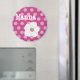 Personalice este imán de nombres punteados de polka marrón. Puede cambiar el nombre a cualquier nombre que desee en el área personalizar.