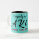 Taza de café personalizada de 444ml. ¡En cuanto a tamaño sólo puedo decir que enorme! pero es lo que esperaba así que estupendo. En el asa me entra la mano entera y no sólo tres dedos como me ocurría con las otras tazas. También comentar que es el tamaño que se ve en las series americanas, tanto para café como para infusión. En cuanto al acabado decir que es correcto, con poco tiempo de uso no puedo especificar mucho más. Pude escoger el nombre y el color pero no la tipografía, quizás esa elección pueda decidir a más gente. En términos generales y por el momento, buena opinión.
