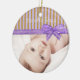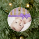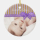 Personalice este ornamento de fotos moradas y moradas para Navidades o sólo para un bonito para su bebé. Añada su foto al frente del adorno en el área del personalizar. En la parte posterior del adorno, agregue el nombre y la fecha de su bebé.