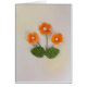 Flores naranjas cortadas a mano con perlas y hojas verdes pegadas en base amarilla en la tarjeta de felicitación para el cumpleaños. *Todas las cosas que ves en los productos son hechas a mano, ¡pero debes saber que tienes una foto!