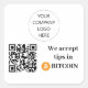Personalizable Aceptamos Consejos en pegatina de Bitcoin para pequeñas empresas. Personalizar el logotipo de la empresa y el código QR de la cartera de Bitcoin con el suyo propio.