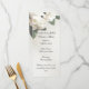 Esta maravillosa plantilla le permite completar los detalles, simplemente reemplace nuestro texto con el suyo. El diseño presenta flores blancas para un menú de cena de boda blanca.