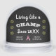 Viviendo como un campeón desde YYYY, una orgullosa sobreviviente de cáncer de mama | cinta rosa, estrellas amarillas brillantes | texto y fondo de personalizable completo