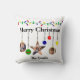 La parte superior de esta almohada tiene una variedad de coloridas luces Navidades. Las palabras Feliz Navidad están escritas debajo. Colgando de las palabras Feliz Navidad están los adornos de Navidad, que algunos pueden ser personalizados con tus propias fotos, familia, amigos o mascotas. Es una gran adición a la decoración de tus Navidades. Si tiene algún problema con la adición de sus propias fotos, por favor contáctame.
