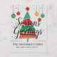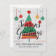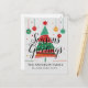 La postal de Hun Holiday presenta un árbol de Navidad de colores de estilo retro con adornos colgantes en la parte superior del borde. Personalizar con su propio saludo de vacaciones y nombre o mensaje especial.