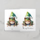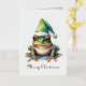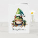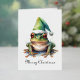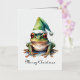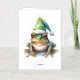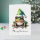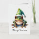 pintura acuarela de una rana verde con un gorra de invierno verde al estilo navidad