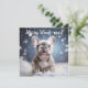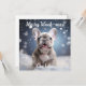 Una encantadora tarjeta de felicitación que capta la alegría pura de la temporada de vacaciones. La parte delantera de la tarjeta incluye un adorable cachorro de Bulldog francés, retozando con entusiasmo ilimitado en un paisaje nevado. La infecciosa felicidad del cachorro es evidente, con copos de nieve cayendo suavemente alrededor, creando una atmósfera serena y festiva. En la parte superior de la tarjeta hay un área de texto de personalizable donde se puede añadir un toque personal. Esto le permite adaptar el mensaje para que se adapte a la ocasión o transmitir sus sentimientos únicos. Por ejemplo, podría agregar un cálido saludo de vacaciones como "¡Deseándote una feliz Feliz Navidad!" o diseñar un mensaje que resuene con tu destinatario. La parte posterior de la tarjeta proporciona un amplio espacio para una nota manuscrita o un mensaje más detallado, lo que garantiza que su toque personal se extiende más allá de la encantadora imagen del frente. Esta tarjeta de saludo se convierte en una expresión reconfortante de alegría navideña, combinando la adorable naturaleza de un cachorro de Bulldog francés con la magia festiva de un día nevado.