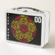 Tin de almuerzo Metalizado de la pelota de fútbol. Añade tu propia elección de nombre y número a la lata para hacer un gran almuerzo personalizado, para la escuela, universidad, oficina o viajes! Utilice los cuadros de texto en el lado derecho de la imagen. Aquí hay un diseño tipográfico de futbol/baloncesto en rojo y amarillo. El diseño está hecho de terminología futbolística y palabras en jerga.