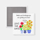 Un imán de frigorífico de moda, personalizable "Save the Date", con tres macetas, llenas de flores de colores, de un collage de papel pintado a mano de Judy Adamson